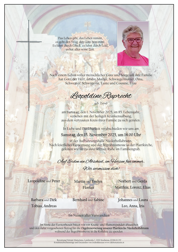 Neue Kerze für Leopoldine Ruprecht-Idinger entzünden.