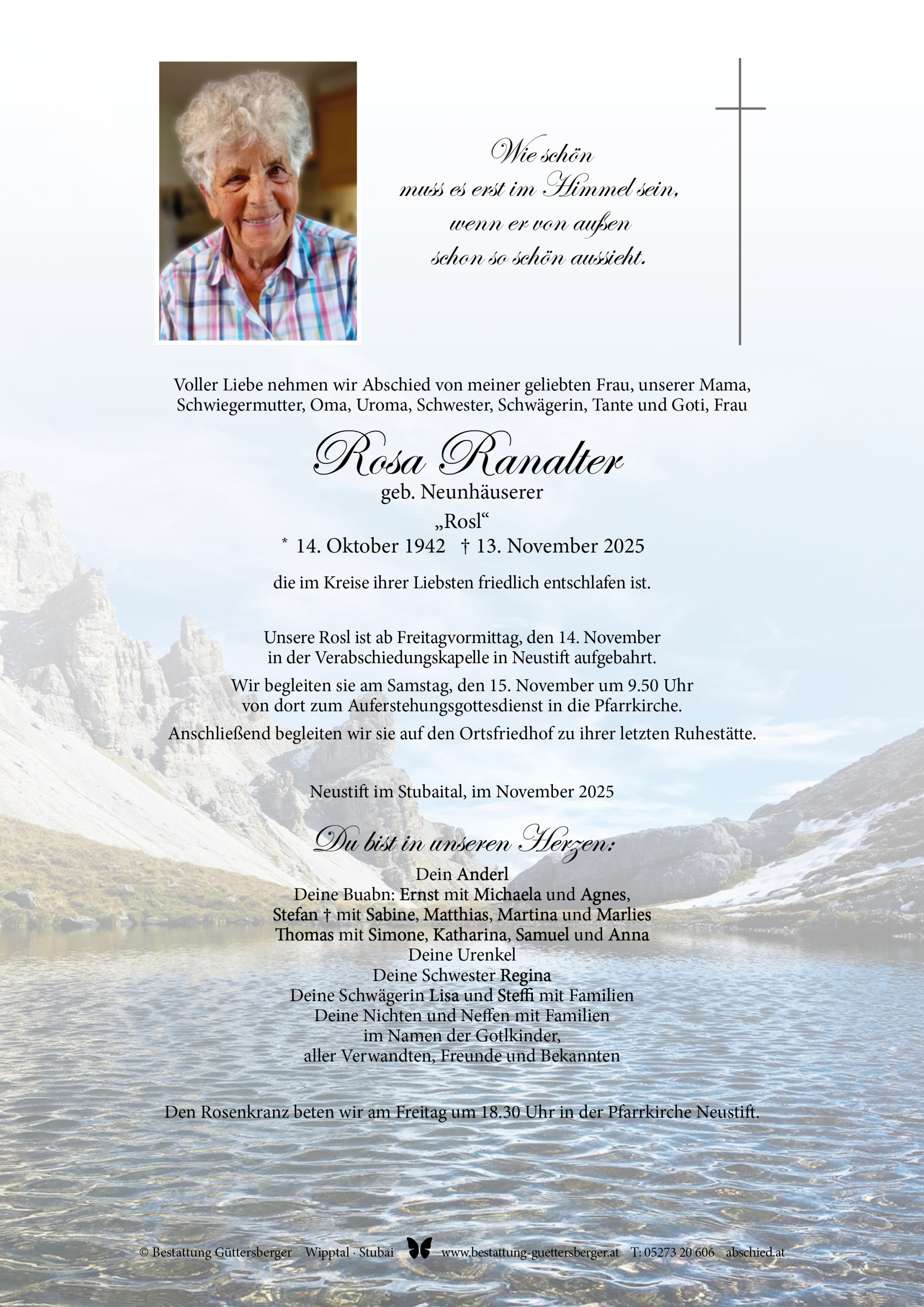 Mit tiefer Betroffenheit habe ich vom Todesfall von Rosl erfahren.