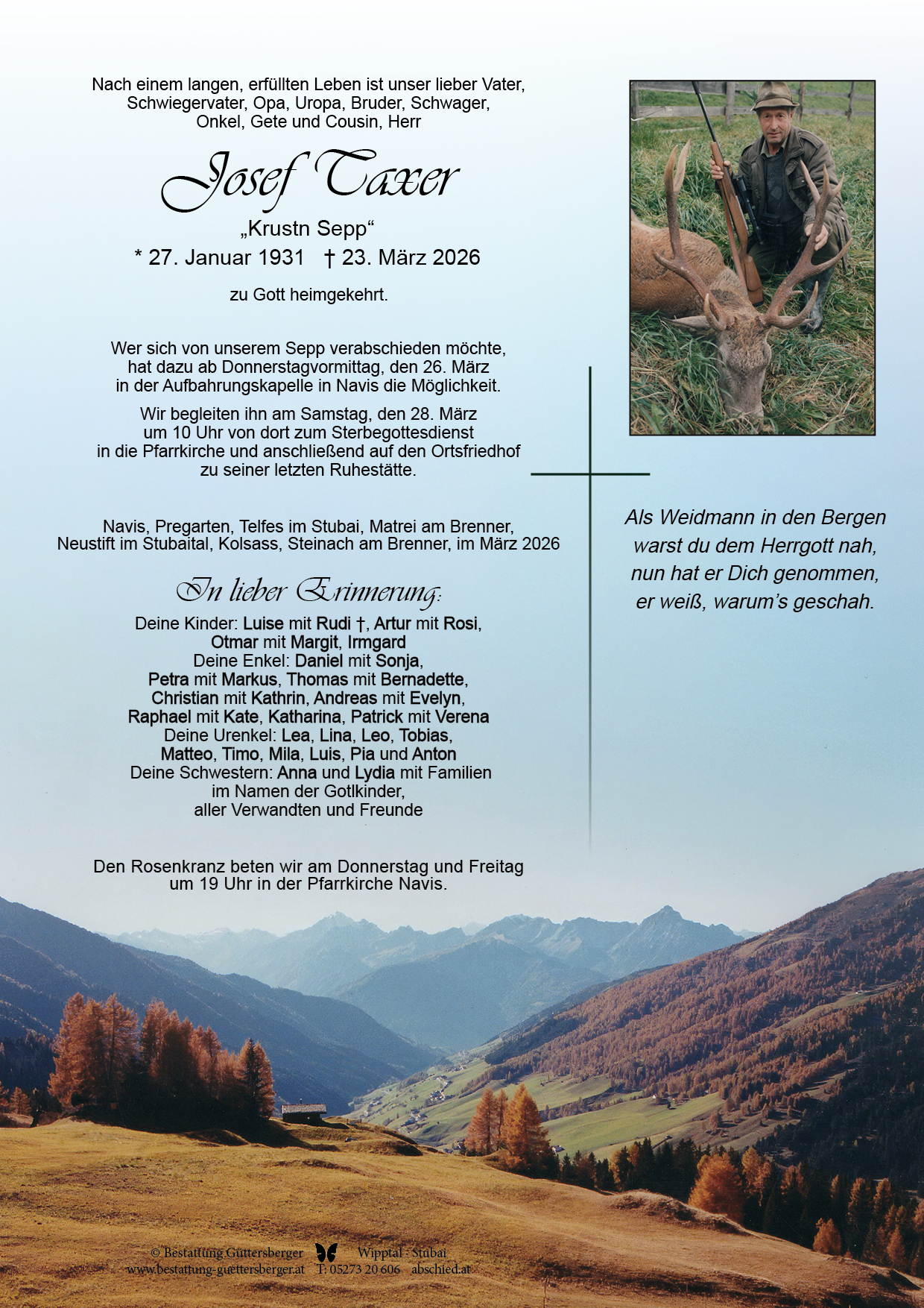 Unser Beileid Fam. Caroline und Sepp Gratl