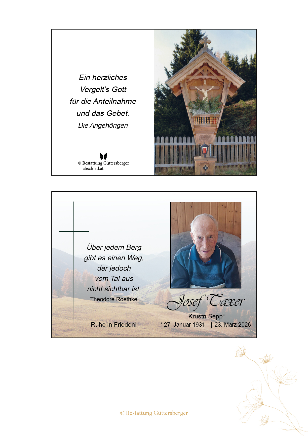Ruhe in Frieden. Tscheikner-Gratl Felix