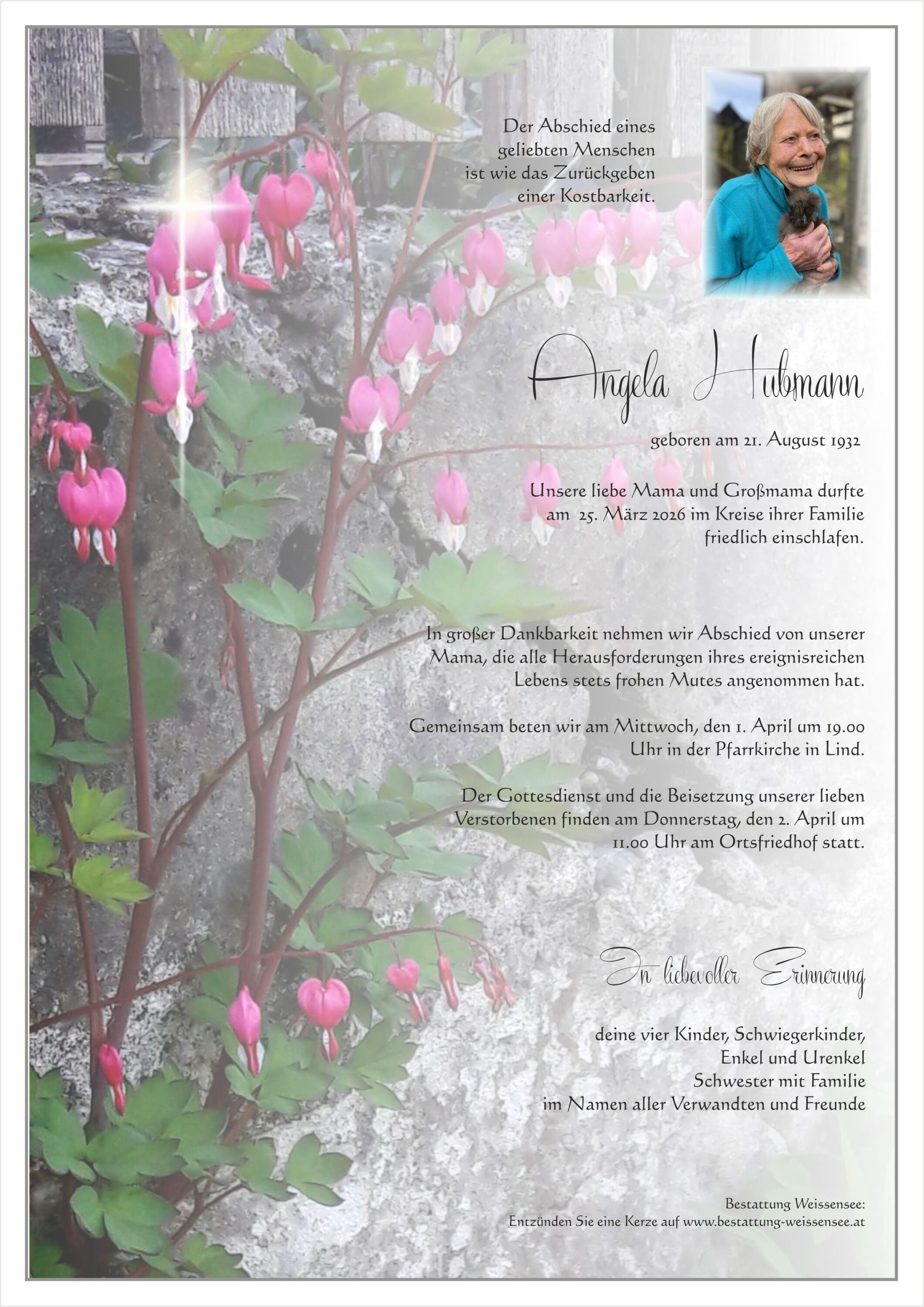 Neue Kerze für Angela Hubmann entzünden.